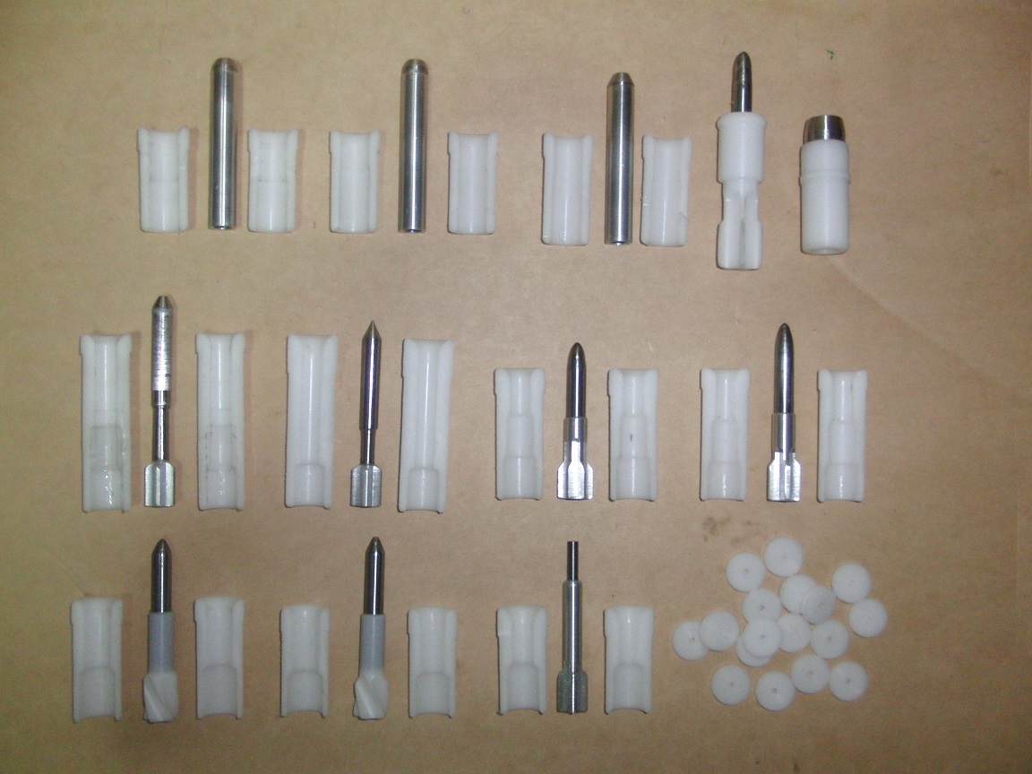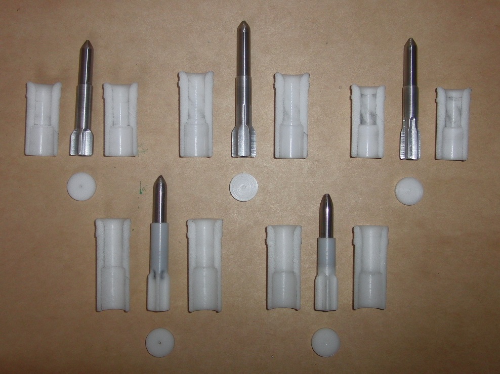 Both factors have now been taken into account though, using more supporting sabots to stop the projectiles yawing in the barrel, and delrin disks to reinforce the base of the shot cup.