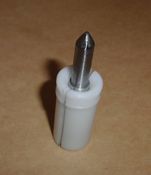 Here's the latest fabriaction, fitted with another set of find approximately at the projectile centre of gravity, so that it can hopefully be fitted directly in the shot cup without the need for extra sabot parts: