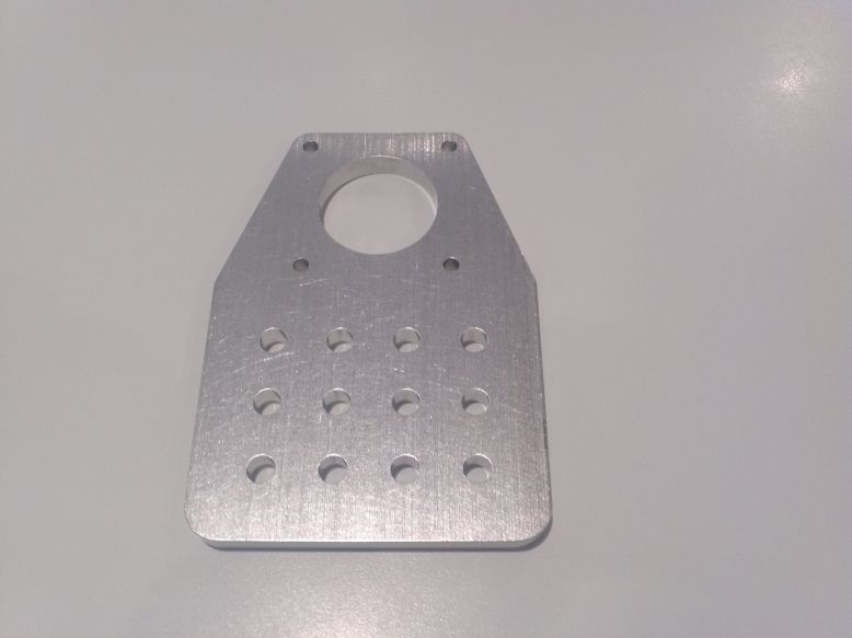 The idea is rather than have the motor in line with the ball screw as I have done in the past, it will lie parallel to the screw and drive via a timing belt. The mount plate is drilled to suit the 80x40 section and the face of the stepper motor.