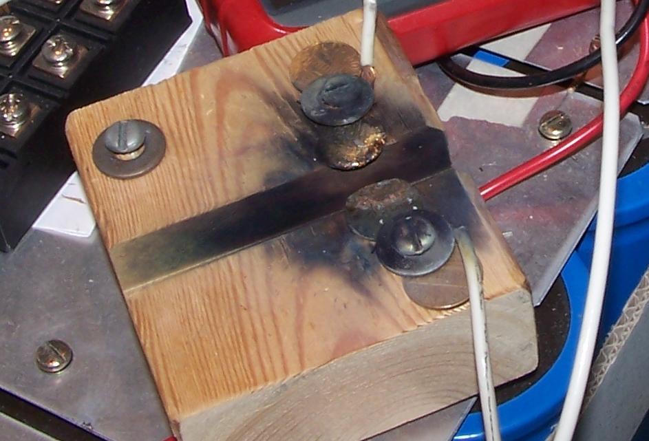 When you get bored of trying to figure out what went wrong in that rat's nest of wires and easily ruined circuits, and when your $50 SCR randomly stops working after only 10 uses at less than 1/10th its rated current surge, build a simple switch that uses two large copper or stainless steel plates as contacts, something a bit like this*: