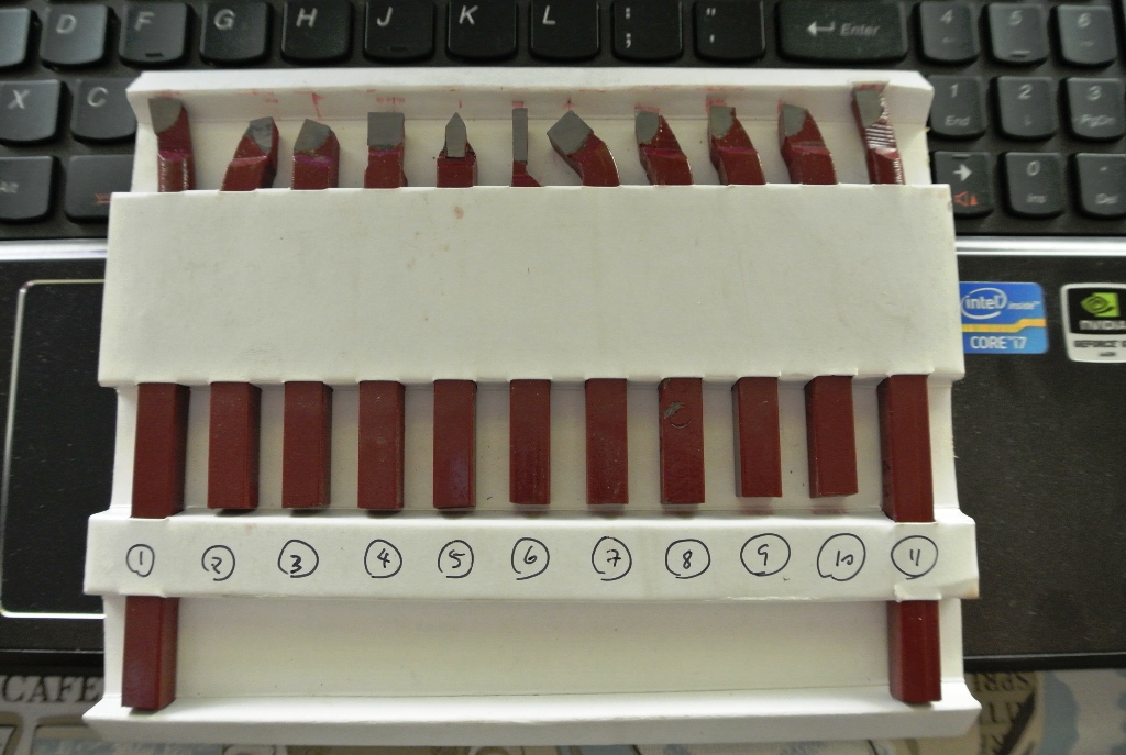 Can anybody tell me the name of each of these blades? And witch should be used for witch cutting? I googled lathe cutting tool types but didn't found much, only the name and function of 2 or 3.