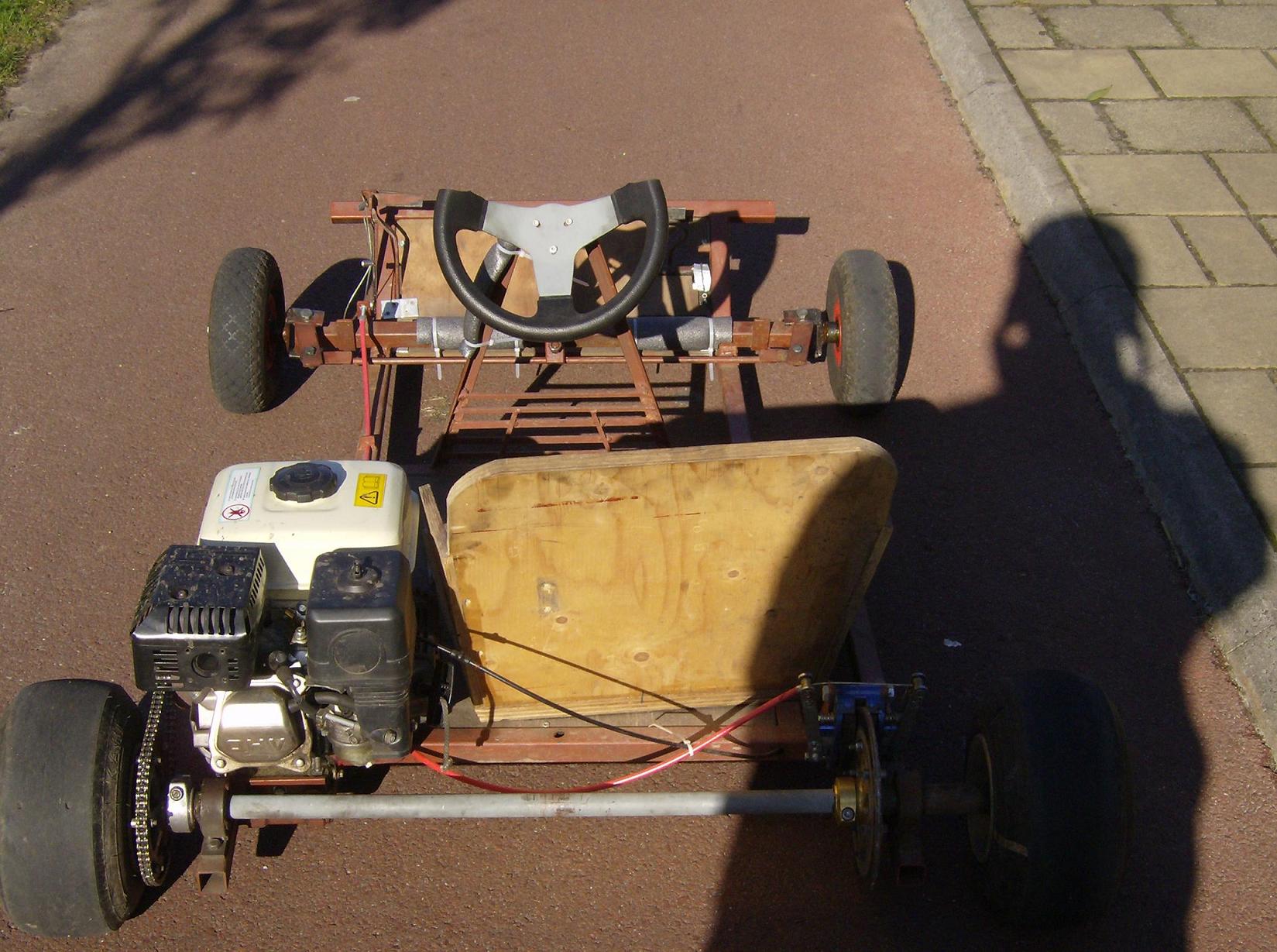 I built this kart 3 summers ago. The frame is made of 3x3cm tubed steel. I made the chair myself as the ones they sell are pretty expensive. I got the steer from an gokart place. Someone crashed their head into the steer and broke the top part:). As it says in the vid, the kart goes 70km/h and accels to 40km/h in less then 4 seconds. The engine cost me 150E (6.5hp honda engine, 200cc, 4stroke), it can be reved up to 6000 rpm!ammosmoke wrote:You posted it already, are you losing ur memory skillz?Is that a modified school chair for the seat? What made you want to cut the top of the steering wheel off?