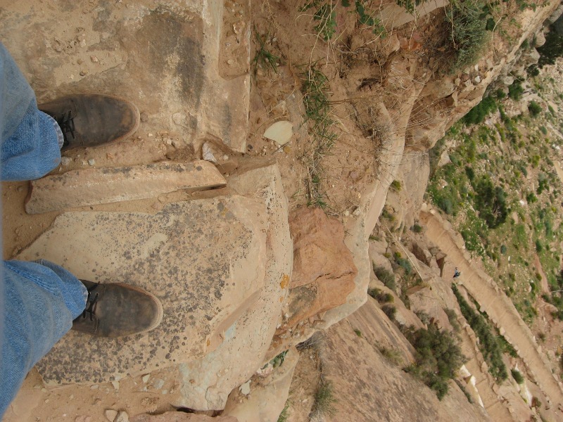 I was reviewing all my photos of the recent trip and noticed when I took this picture of the guy in the tan hat ahead of us on the trial, i managed to get my toes in the picture. There are not too many who take shortcuts on the switchbacks here.