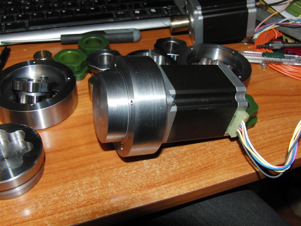 Its a two-stage Hypocycloid gearbox with a ratio of 49:1 its machined out of steel and mounts directly on a Nema-23 stepper.