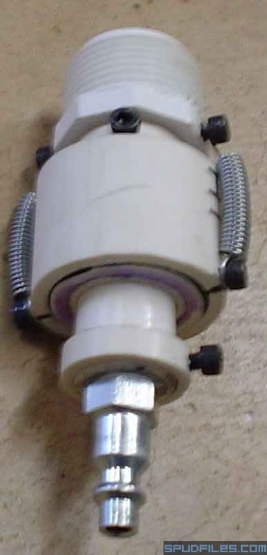 The bolt is 3/4" CTS CPVC, the tee is 3/4" CTS CPVC, the outermost tube on the loading mechanism is 1" sdr21 I believe, and the threaded fitting that is in the back of it is a machined down 1" NPT x spigot adaptor. Every thing else is just random parts machined down to act like bushings. Whatever I could find to fit. Oh and the spring is from an orbit watermaster sprinkler valve.