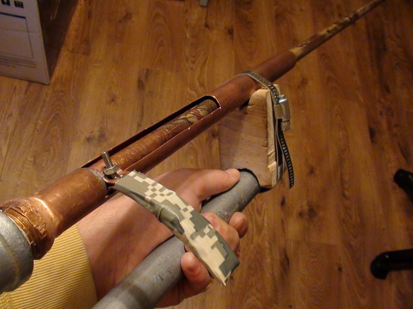 I found about Spudfiles.com about 2 weeks ago and i was wow, i can build nice high power air gun, so i decided to go with the piston valve design. I plan on transforming it in an hunting rifle, or totally replacing it with steel components and take it to 1000 PSI, or more with a home made HP pump. its .55 caliber, 40 inch barrel with barrel action breech loading. it shoots 4 inch 16 gram/ 246 grain nail thru 3 inches of solid wood from 15 yards, i didn't go past 300 PSI . I have a 400 PSI shock pump. The piston is made out of a screw with rubber sealing head, floating O rings and integrated some plastic washer for stability in the brass nipple, and rubber and foam bumper. ill put a scope on it some kind of stock. The air tank is a 12 inch galvanized steel pipe , and the volume is 150 ml, or cubic centimeters.