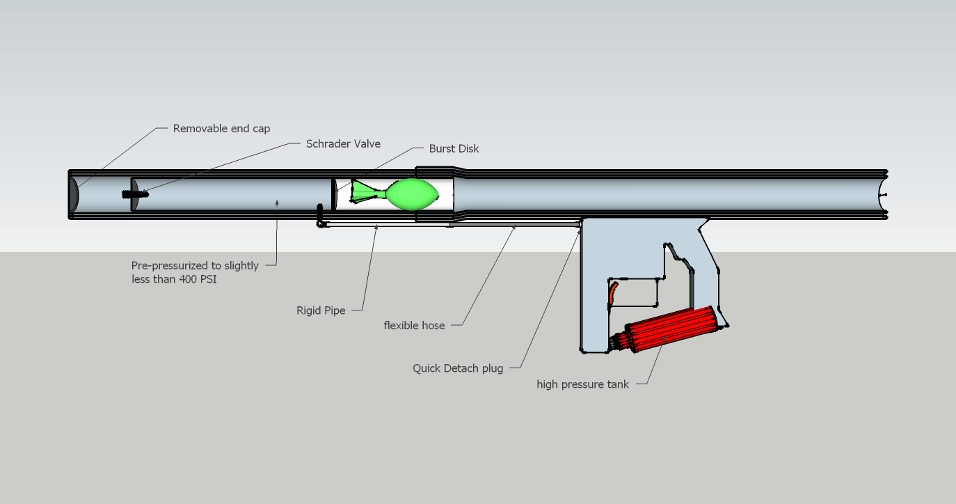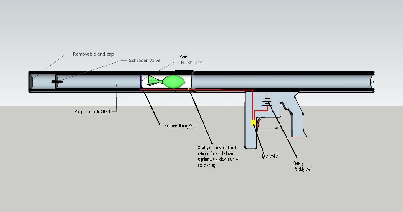 The thought of having that much firepower made me want to be our squad's AT gunner, so I began to hatch ideas for one and thought about the SMAW launcher. I have a significant portion thought up, but I am having a hard time coming up with an idea to connect the trigger to the valve in the removable rocket casing in an effective way. I plan to use 4" belled end pvc pipe for the outer body, and 3" belled end pvc pipe for the chamber and barrel. I want to be able to attach the rocket shell and fire without having to fumble with connecting anything on the inside of it.