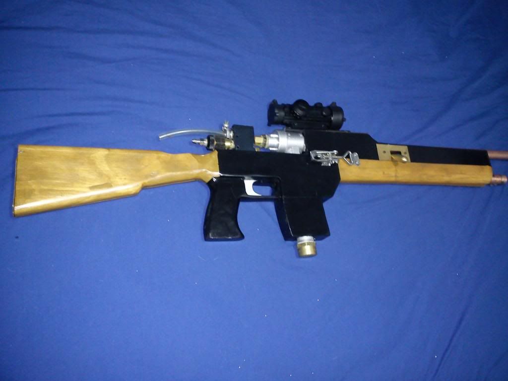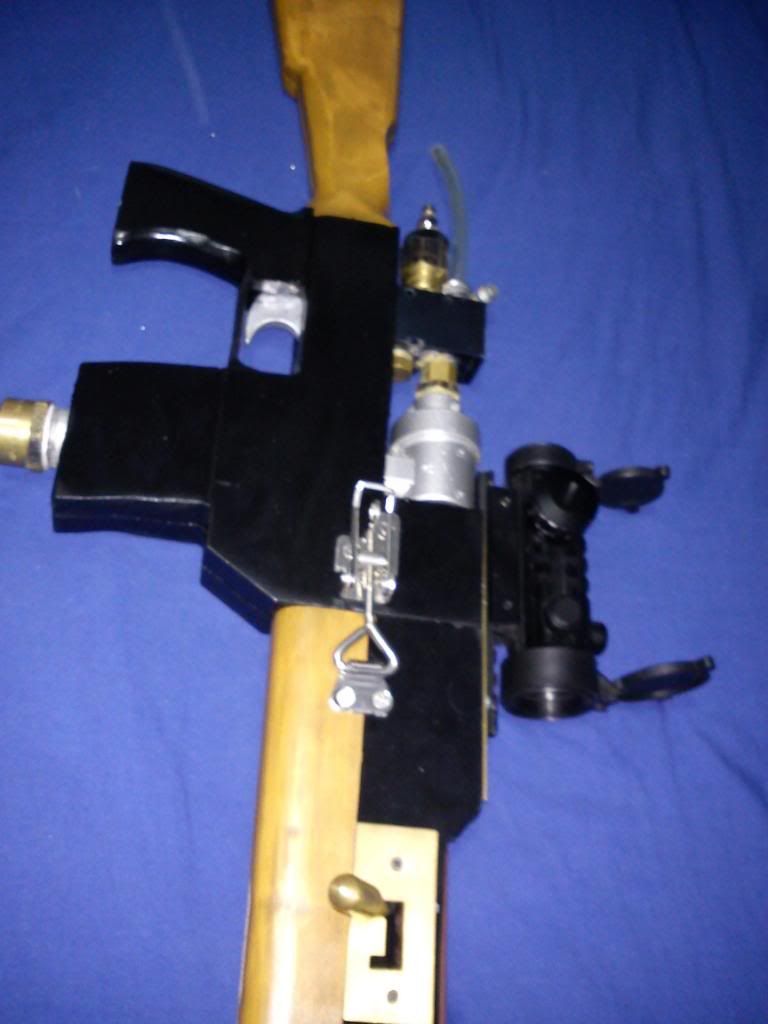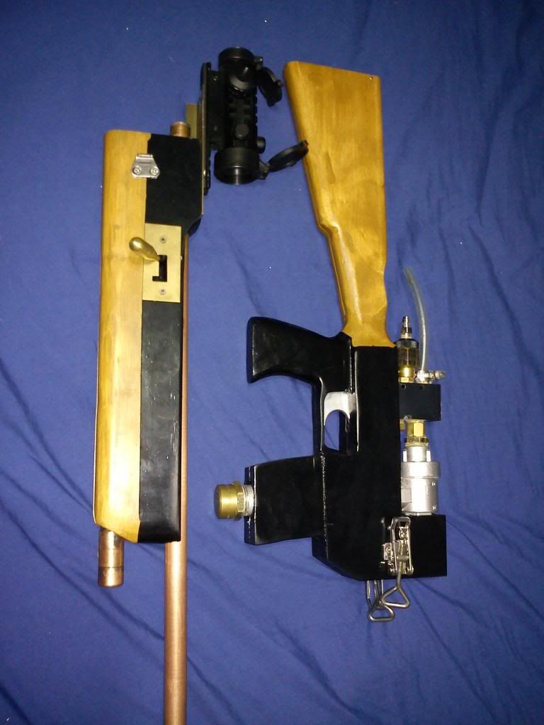 Let us know what you think it looks like, due to the pneumatic design there isn't alot of rifles that i could model it after so I took stylings from the Steyr SSG 08 and the M14 in combination with the wooden stock , i just couldnt bring myself to paint it
