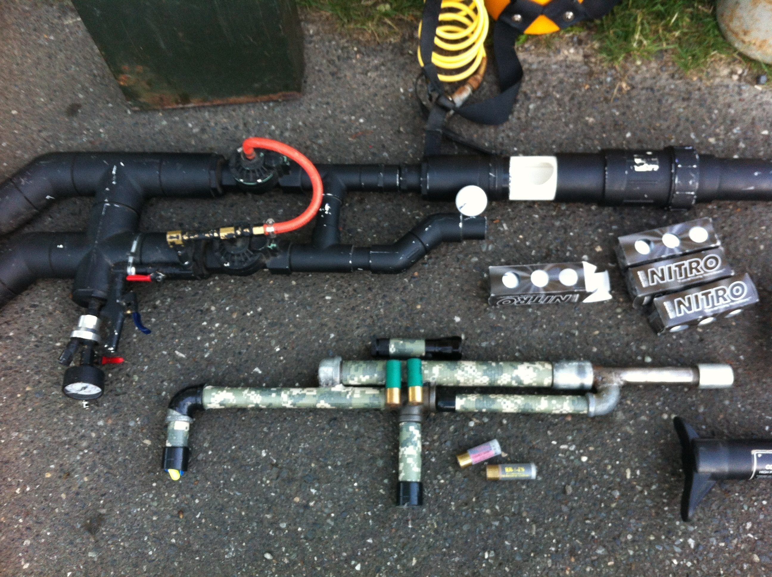 Summertime fun, here's some pics for you guys! I have a gig this Friday shooting confetti, candy, and glow sticks into the sky at an outdoor rave event. Going to make new barrel attachments for shooting such objects, if anyone knows how to make good parachutes to attach to glow sticks let me know!
