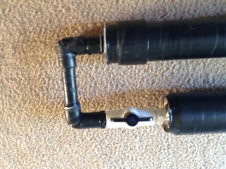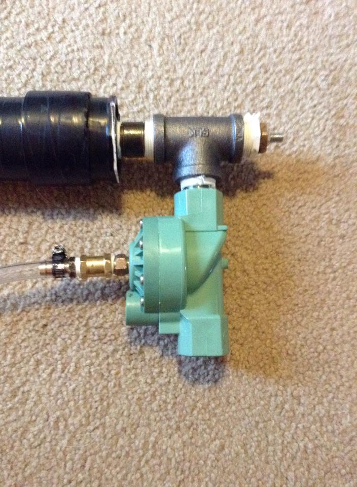 Thanks! I used the ball valve and the weird 'c' shaped section since it was what I had laying around. Once I get money I'll upgrade to a sprinkler valve and probably mount the blow gun on the handle in the middle of it. That and the piston's pretty inefficient so I'll be redoing that next