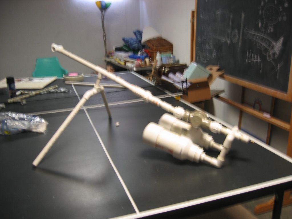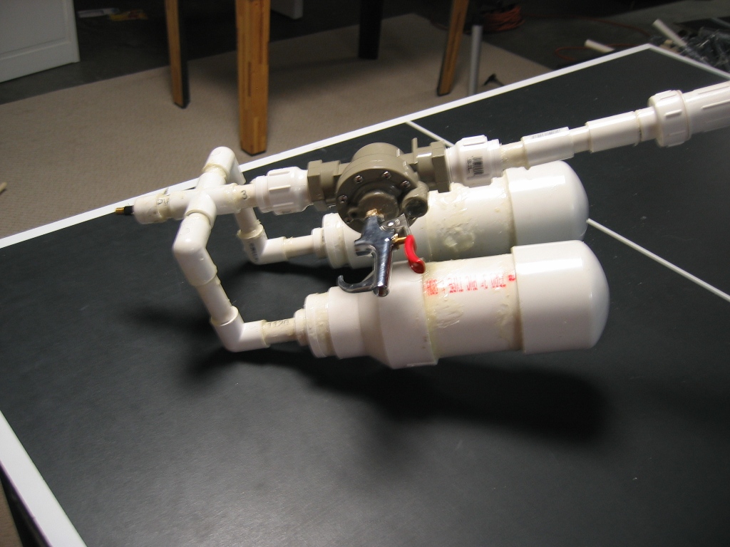 Ha, Funny looking design you have there. For the other part of the chamber(not the big tanks) it would look better if you used some bigger dia pipe and it might be more stable. Other then that nice cannon but you used Bell reducers which are DWV 99% of the time.
