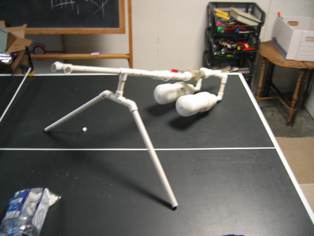 Edit: Nickel in the tee? Is that the tee thats holding the bi-pod? If so you should of bored(sp?) out the tee so the barrel can fit straight through without cutting the barrel and then re-joining it which will slow down the projectile.