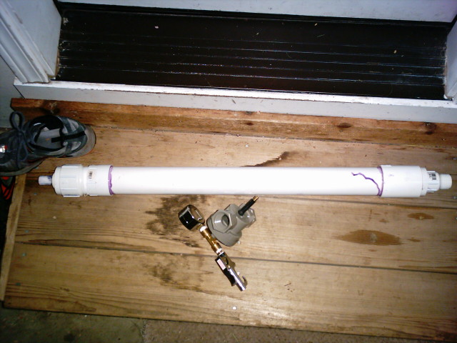 the gun has a 2''x2' chamber and a 1/2''x2' barrel. the piston is made of hot glue and is actuated by a modded sprinkler valve. i havent shot it yet, im still waiting for the glue to cure. half by design and half by mistake i can change my barrels.