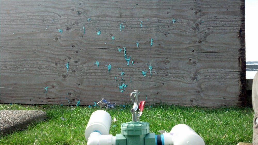 Can I suggest switching the blowgun for a ball valve?It is critical to stake this thing into the ground, otherwise the trip wire will pull it off target and firing will cause it to swivel.
