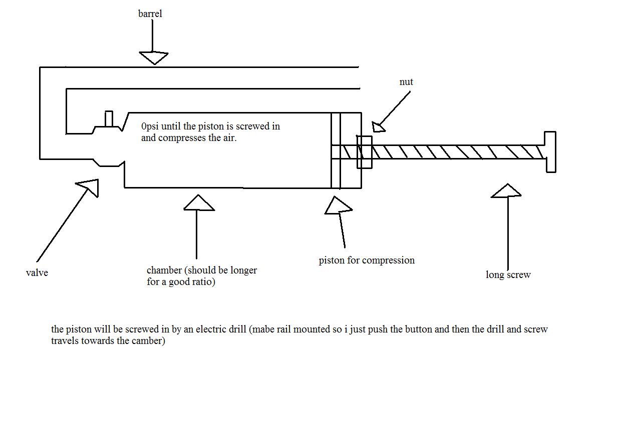 the picture pretty much explains it all. the screw on the end of the chamber is screwed in and pushes the piston towards the valve and compresses the air in front of it. then you simply open the valve (burst disk mabe) and watch the ting fly (?)