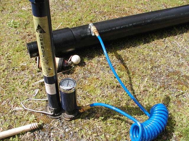Pressure Test 2009.  <br />The core leaks a little due to the saw cut o ring grooves, so the 85 PSI test pressure bled to just over 80 by the time I grabbed the camera.<br /><br />I gotta make a new valve core for this.