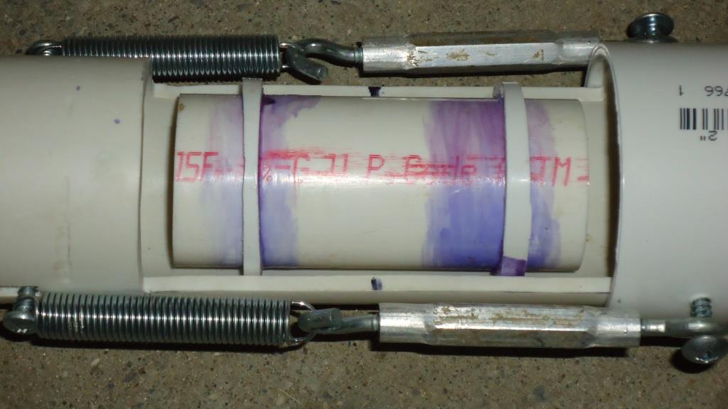It uses a 1.25" barrel sleeved inside of a 2" pipe. I found that if there is a coupling around the barrel, that it is a perfect fit inside of a 2" pipe. There are two slots cut out of the 2" pipe, one that allows a cartridge to be put in, and one that allows it to fall out. In the back of the pipe, I have a floating piece of 1.25" pipe with half of a modified coupling that grabs onto the cartridge. There is an o-ring inside of coupling that presses up against the cartridge to keep a full seal against the face. There are two springs attached to the floating catch, that keeps a steady 23 lbs of force on the back of the cartridge at all times.