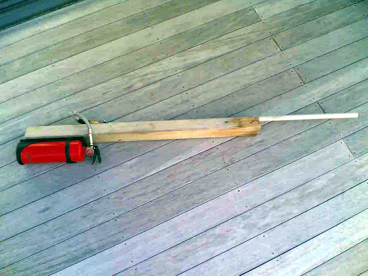 I made this one out of an old fire extinguisher, a 2 by 4 and some electrical pipe. This is as simple as it gets for using a fire extinguisher as a chamber.