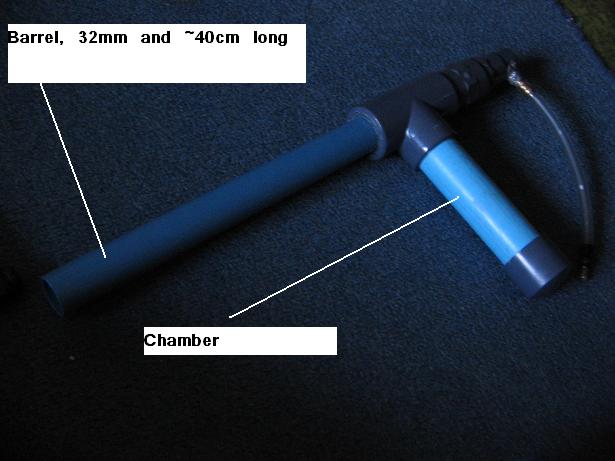 I will give you a pic and a video, the cannon itself is quite small, it has a 32mm barrel and a 40mm chamber. I have only tested it today at low pressure with toilet paper as the projectile. Which you can imagine doesn't yeild the best prefomance. But it works, and thats all I was aiming for.