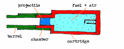 the space above is the hole where the air from inside the cart is escaping from. now, 4 arrows pushing to the left, 5 arrows pushing to the right - the cartridge moves back, in the opposite direction to the projectile.
