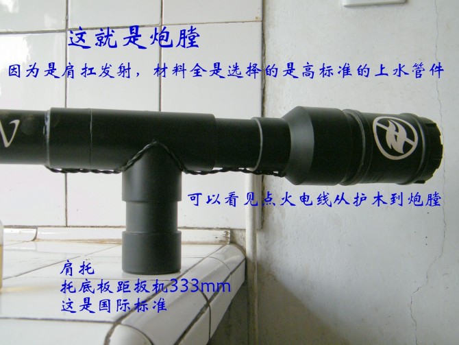 In the drawing the barrel is not covered.Looks like he decided to go for a smaller caliber later in the build.