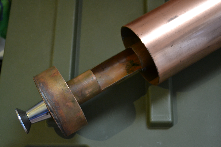 -The entire barrel slides through the center of the cannon with a plunger attached to end. The idea is to push fresh air into the chamber as you pull back the barrel to load it. This needs improvement. Maybe a one way valve on the plunger.