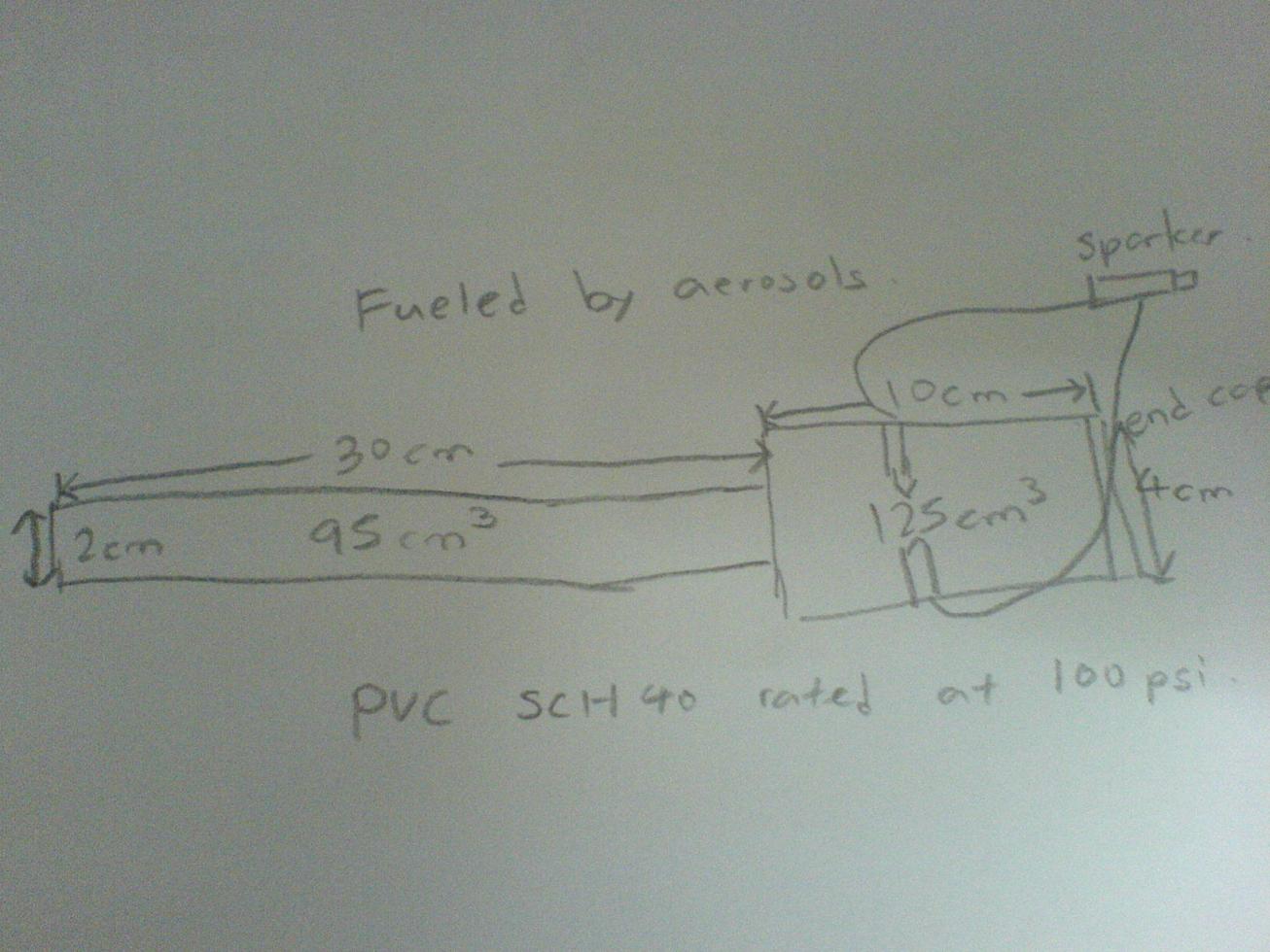 with my setup will it be possible to propel a wooden ball about the weight of a marble over 50meters? what fuel do you guys suggest? i read starting fluid is good..i kinda like it too as its widely availible in my country. if not i will stick to aerosols. can you guys also help me look at the dimensions of my cannon and see if it would work in theory?