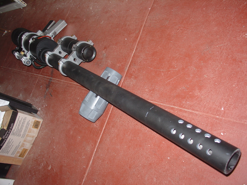 After our weekend of testing we decided to go ahead brake our muzzle to see if the success we we're having with the UHMW rounds through the 520 would follow suit with the BL-417. It did. I am still surprised the difference. In disbelief, I did one last test fire before chucking it in the indexer. Sure enough, the 1st 20 feet curves 3' left, then 10 feet later 6' down... chuck, index and drill 20 - 1/2" muzzle vents at the 60º, 120º, 240º and 300º angles and shoots exactly as the braked 520. UHMW rounds leaves smoothly and from shooter POV has small wag and corkscrew all within a 12" circle.