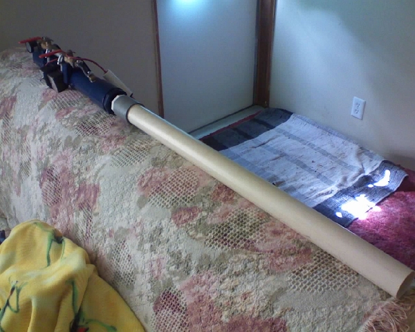 All the PVC pipe and fittings I built this gun with, I got at work for free. I could just as easily get some 4" or 6" SCH40 or SCH80 for a chamber, and use this meter and fan control box. I noticed with my first cannon that people respond better when you pull out an 7ft long cannon compared to a tiny pop gun.