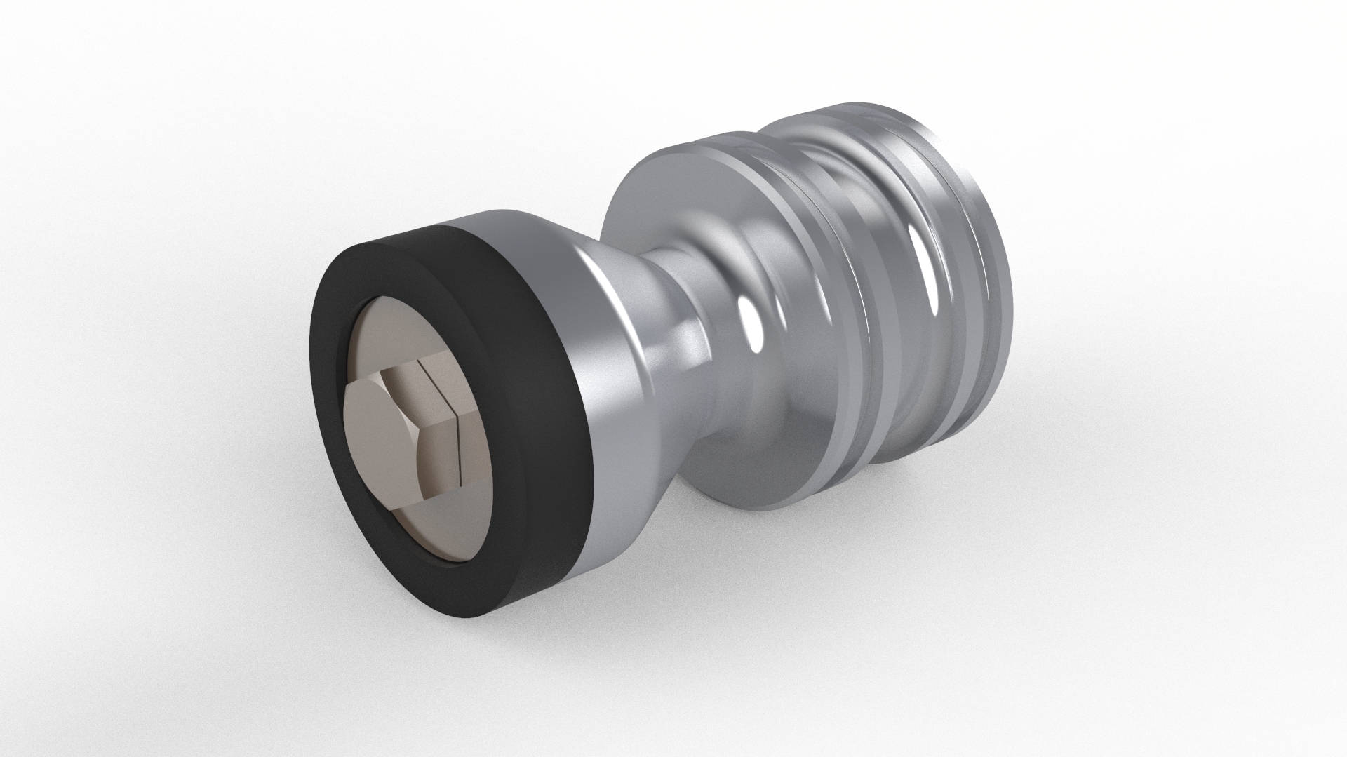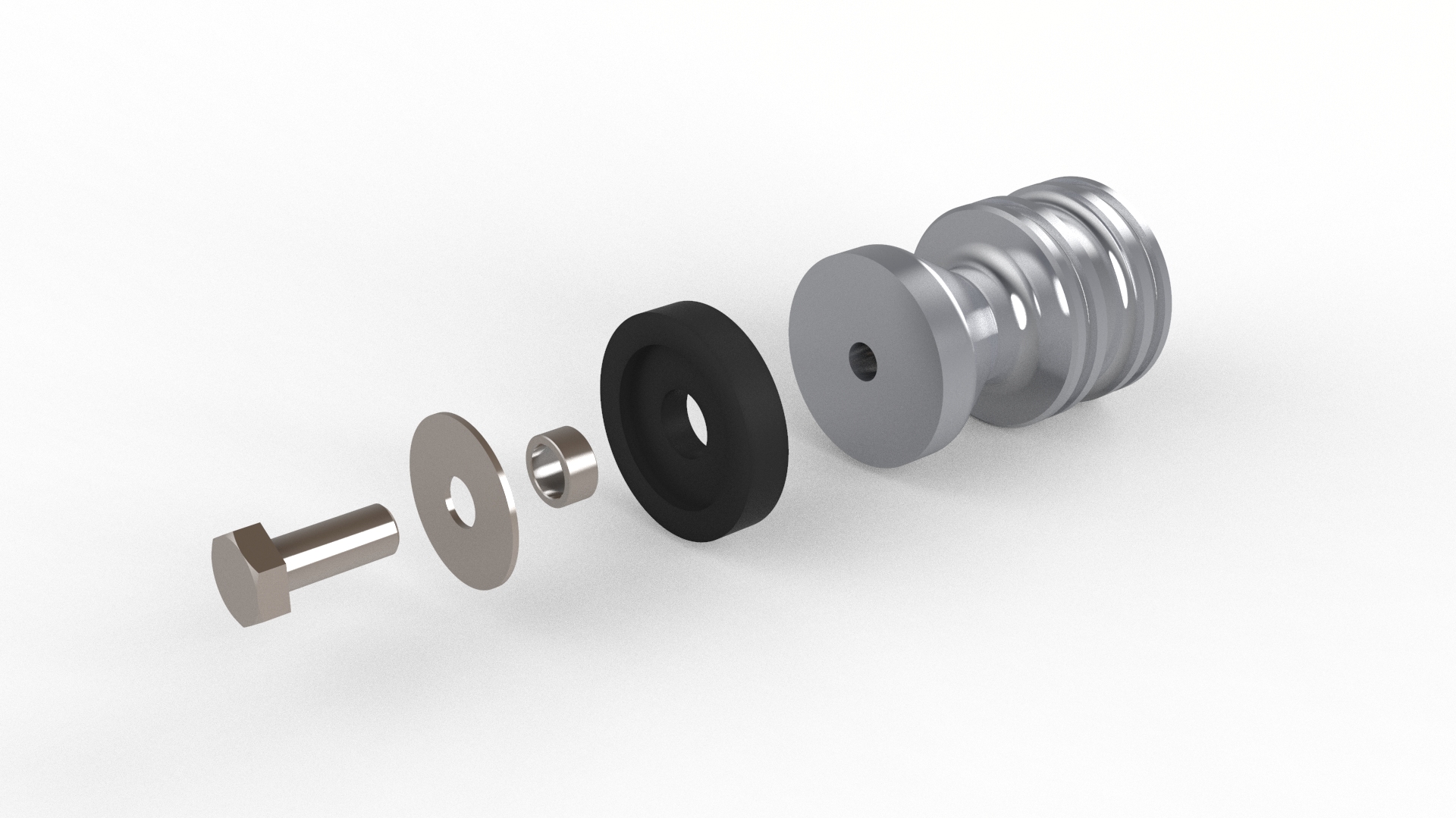Pressed into the rubber face seal is a sleeve to allow the screw to clamp the seal tight and not over compress the rubber