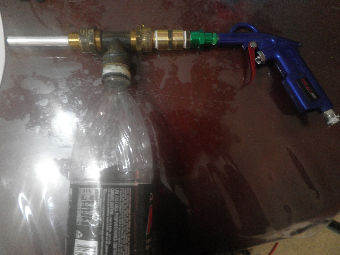 Thanks for the help, i drilled the holes and and it works better now. so far when i pump the bottle to 50psi i get a strong shot, i think if i get it to 100psi ill be able to have 2-3 shots. I got a new blowgun and made a fix to allow more airflow. Im also changing the airtank to a 1kg fire extinguisher.