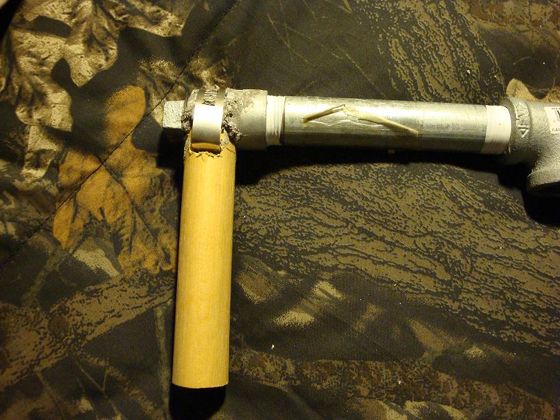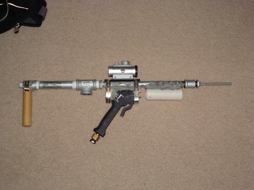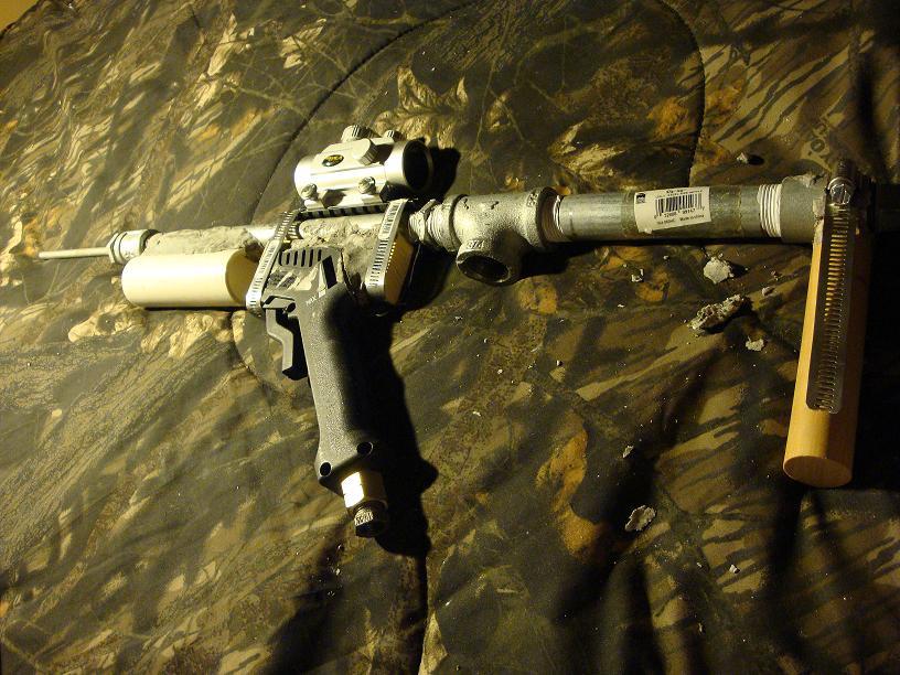 Here's what I've done- fitted a stock on it- its just an old ax handle-but it works great. Also I tore off the pressure washer because the putty didnt hold it very well, and so I used two hose clamps.