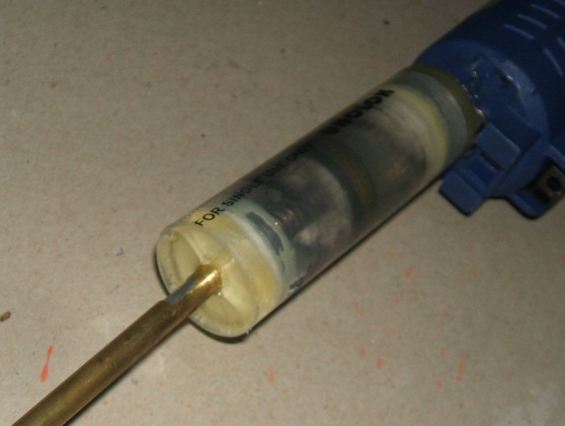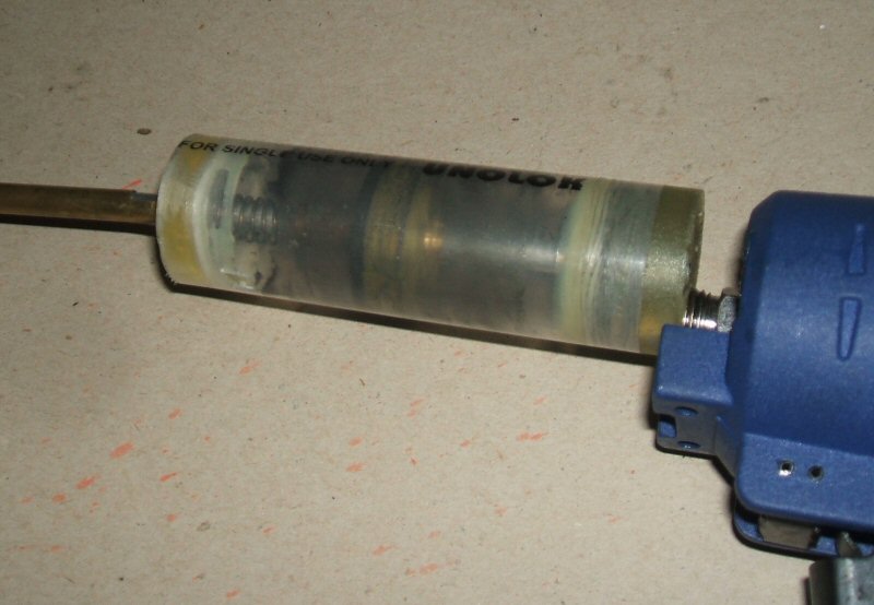 I basically replaced the nailgun's hammer piston with a 6mm port that fed into the blow forward breech I had made. I was expecting a considerable increase in power, it turned out to be a little too much however - on the first shot the bolt piston as well as the front end of the breech were shattered. as you can see from the attached photos, the bolt is jammed forward instead of having been returned by the spring. I blame this mostly on the air vent I had but at the bottom of the outer tube, had it not been there I'm sure the air being compressed would have cushioned the impact of the bolt.