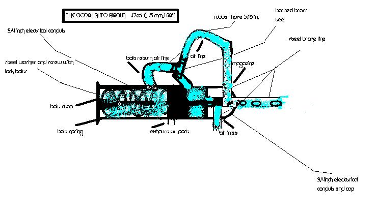 first post but i've been lurking awhile, first off i've built clouds before, i'm not a total noob but i decided it was time to step it up and do a piston gun, i started looking at the swanstrom design and started working on it but mine took on a style of its own 8) i made a working prototype except for the "bolt return line" (see diagram) i need to get the brass tee. as you can imagine without it the bolt floats half open and empties ungodly fast