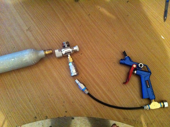 This build uses the sodastream bottle I picked up for a steal, along with a regulator and various fittings to hopefully result in a reliable gun with a half decent amount of shots to it before refills.