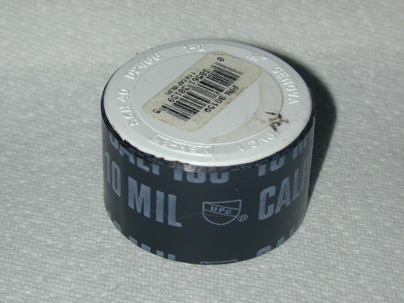The tape used is 10mil plumbing repair tape. If that proves to be not suitable, I'll use gorilla tape, instead.