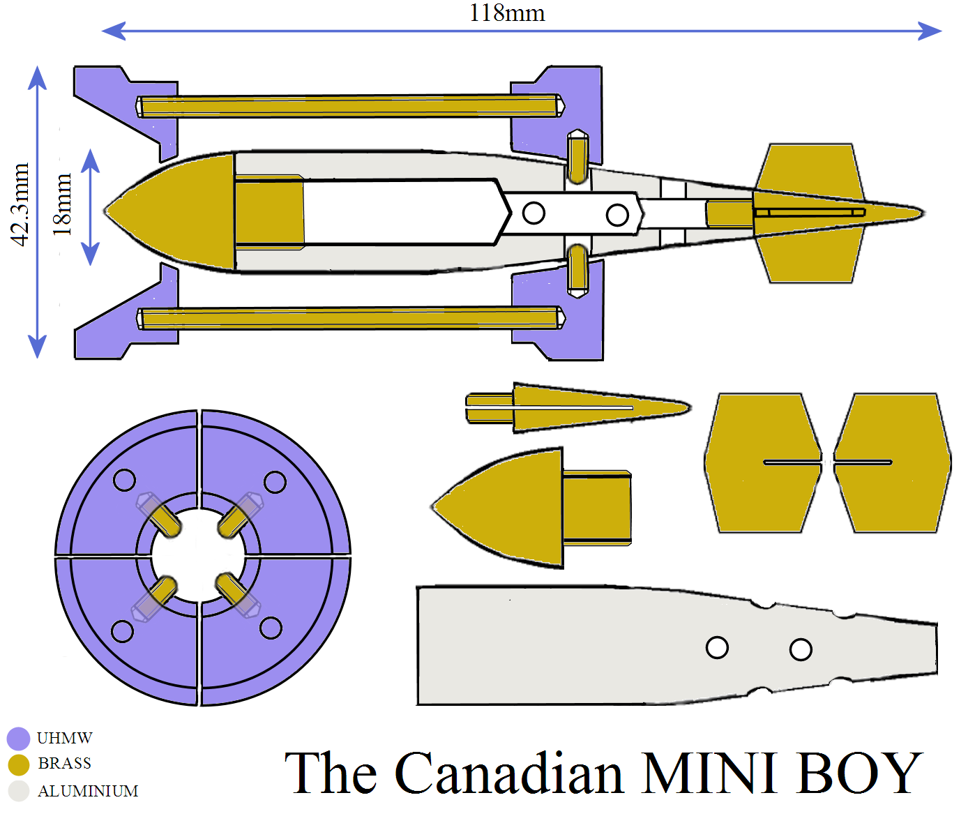 The sabot is very light, made of 4 pieces of UHMW in front and in the back, linked with 4 brass rod. Will this have a chance to resist to the pressure and Gs?? I have no idea please tell me. Of course I could use steel threaded rods instead of brass.