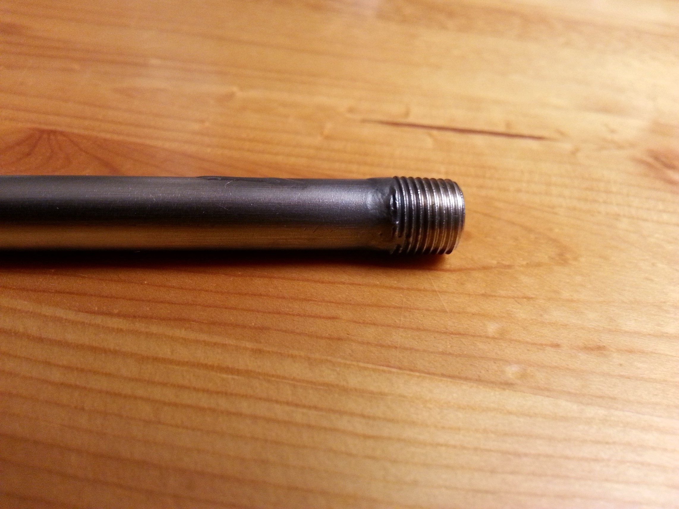 Managed to Tig weld a piece of 1/8" thread to the barrel without destroying it
