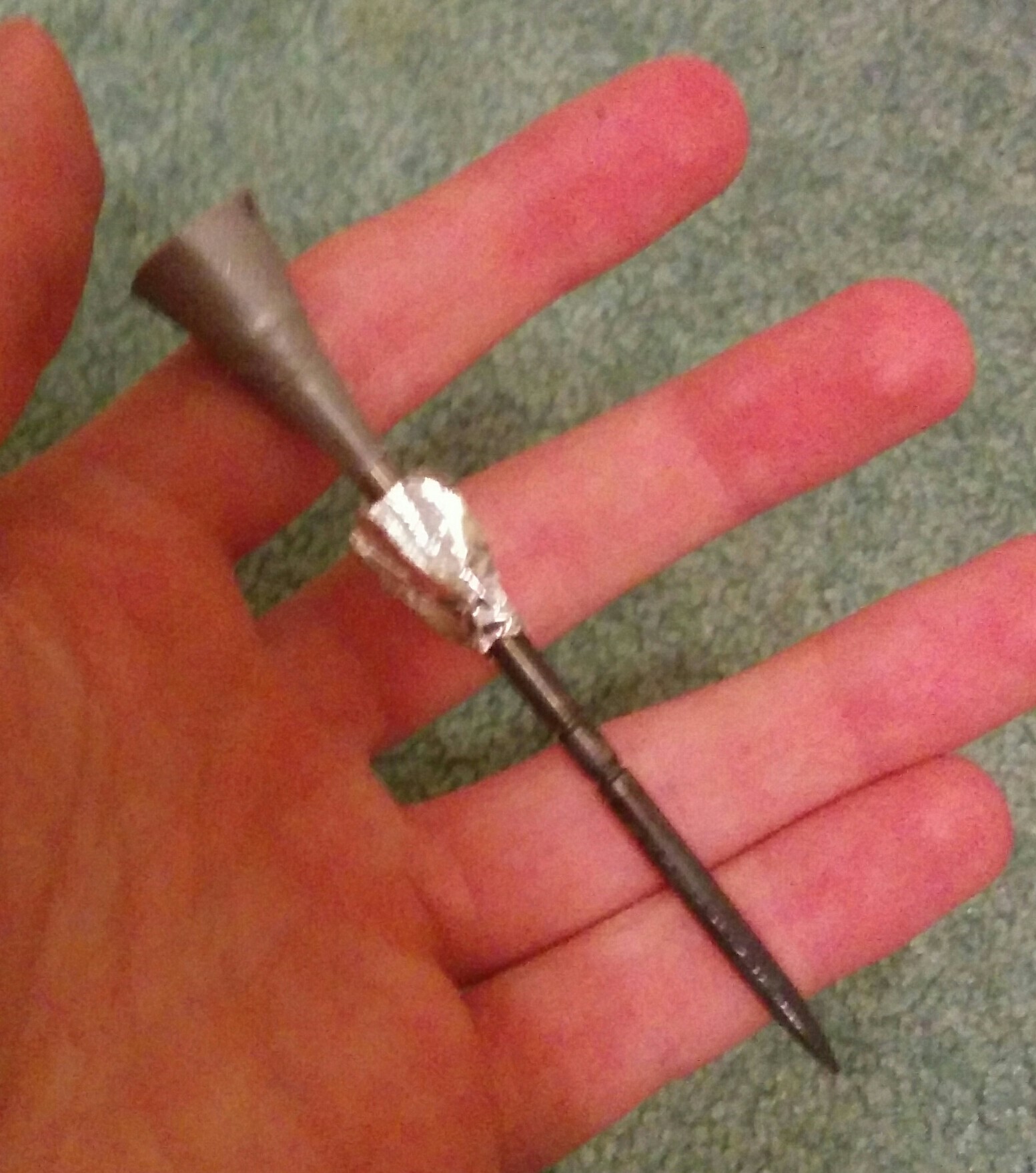 You can somewhat see the helical fletching here. I made it out of aluminum tape and it was difficult to keep neat.