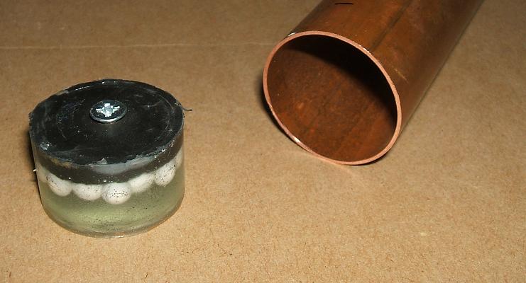 Here's the latest piston I cast for a 3/4" high pressure pneumatic I'm making, inside the copper pipe I'm using as a chamber.