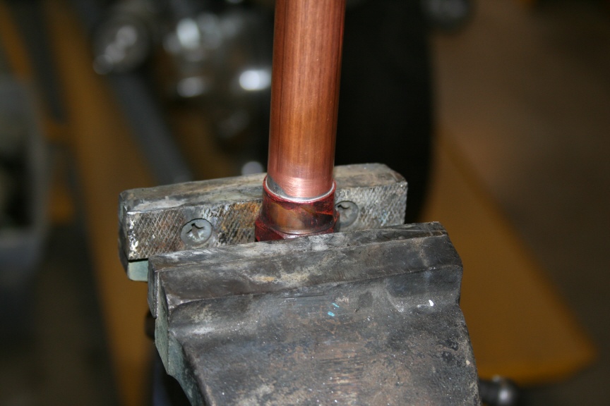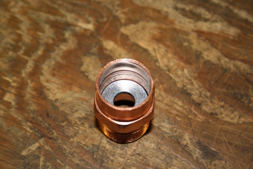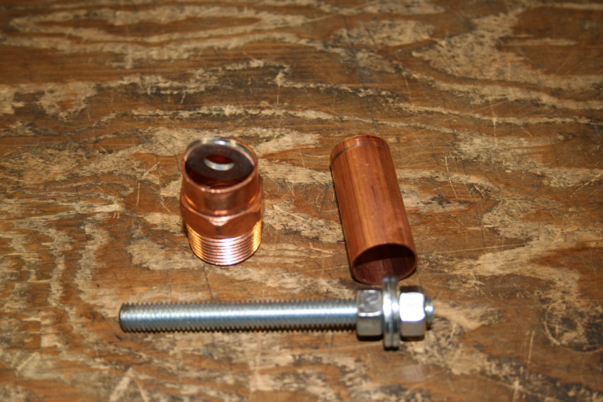 Measure, mark, cut and de-burr a 2" piece of 3/4" copper. Measure, mark and cut a 4" piece of all thread. This will be your mandrel, and then part of your piston.