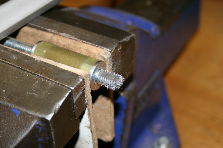 Mix your resin/epoxy as per manufacturers directions. Pour slowly into tube until about 3/16&amp;quot; from the top. Turn a nut down into the resin until the top of the nut is one washer thickness down. Add resin if needed to cover the nut. Add another filed down 3/8&amp;quot; flat washer to the top. Press it lightly down to contact the nut. Now, walk away and let the resin cure.