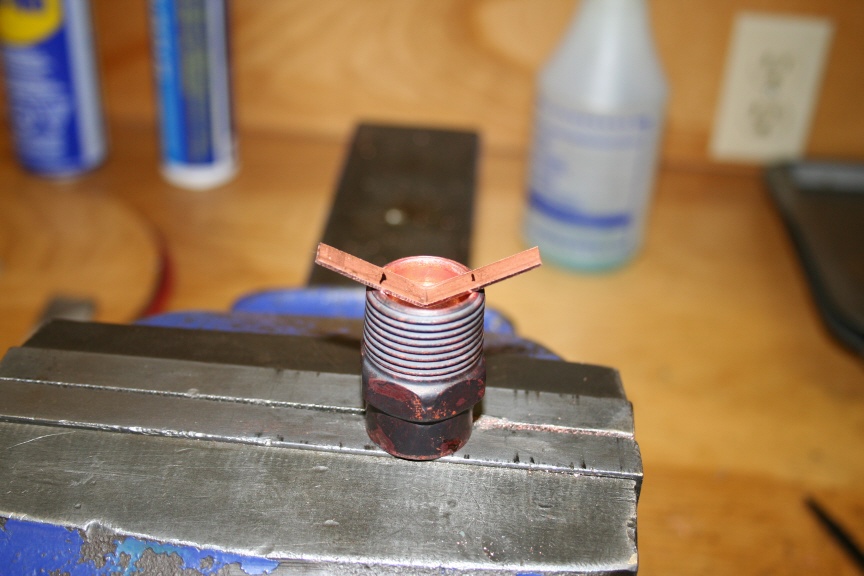 Cut a strip out of your piston mold about 5/16&amp;quot; wide. Clean up edges with the file. Mark center point and bend about 45 degrees. Place on fitting and mark as shown. Finish bending to &amp;quot;w&amp;quot; shape. This is your spring retainer.