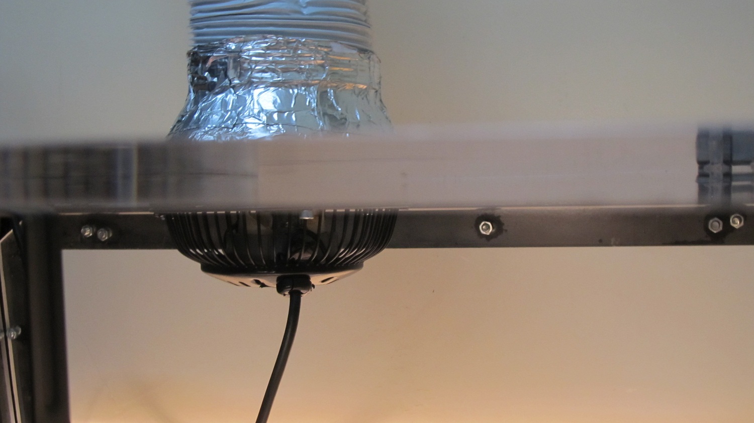 The fan is an explosion proof sealed fan AC, now i turn it into an exhaust system, sealed with aluminium 'tape'...(As you see in the picture)