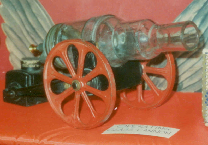 The first toy cannons that used bangsite were made from glass not many were sold because of the cost to make them but they are still around and still work.