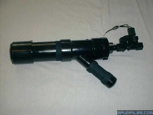 Here's my latest cannon I built over the weekend, The Punisher. It's a coax design with the most simple diaphragm design I could find. The gun is about 17" without the sprinkler exhaust valve. I haven't put any goodies on it yet because I haven't decided weather to mod the sprinkler valve with a blowgun or just go with a small electric push button trigger. Here's some photos:</div>