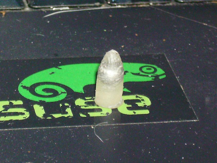 As you can c on this picture the mass at the front is bigger then at the bottom. Oh yeah and about this program u used on that nose cone of a rocket. I used one before, it was in english though. Ill check it out for ya. But dimensions dont matter. Just make sure the programs cone is in the same scale (height/diameter etc)I have tried arrow field points which fit perfectly in a brass barrel and they still tumble despite having a heavier front and a cone in the back. Unless the neck of the lead pellet makes a huge difference, then simply having a heavier front doesn't do enough.