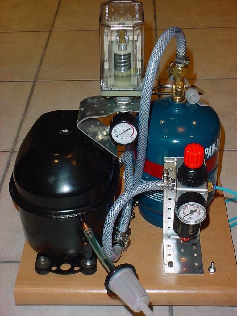 I got an old fridge today and have succesfully built a 35 bar compressor from it!!I used a 1/4" 3 way bv to fill and bleed.It has a nut on it so it can be mounted on a board. :D