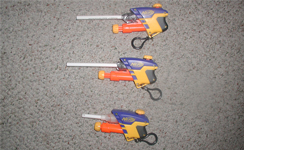 Ok im not really sure if i can do the whole picture thing or not so cut me some slack. Alright all you do is cut the orange barrel on the nerf gun down, and take the stick inside out with needle nose pliers or something. Then wrap one end of the pen barrel in duct tape until it fits snugly in the hole. Then duct tape that in tight, put it back in the casing, screw it back together, and shoot some stuff with airsoft bbs. epoxy could be used and would probably be a lot stronger and better. on the sawn off picture of mine, i just happened to have a piece of pvc that reduced from the nerf barrel size to the pen barrel, so i just used that.