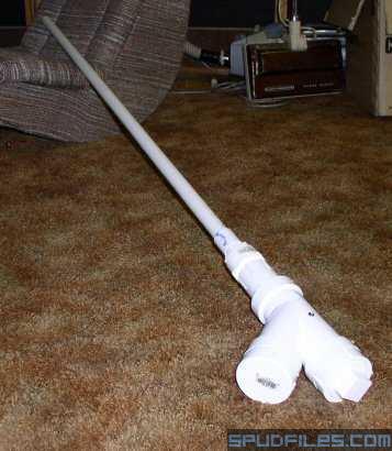 This launcher was not a complete loss. It gave the chance for the creator to experiment with a breech-and-bolt action design, and let him put his "Ghetto Propane Meter" into use. The paint ball bolt was to have an attachment made of thin sheet metal to keep the paint ball from rolling. This metal piece could have been removed for using the potato cutting breech, but it can't shoot, so it wasn't done, and now it's scraps.